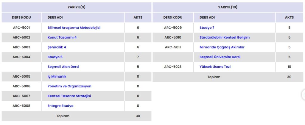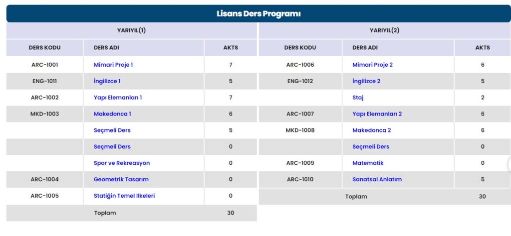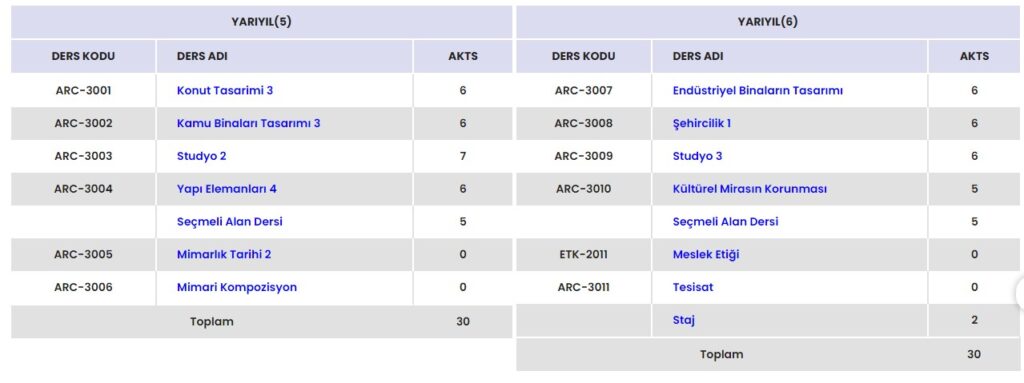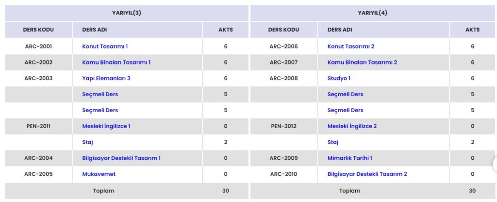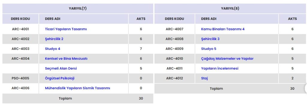 Mimarlık Fakültesinde 4 Yıl Boyunca Alınacak Dersler
